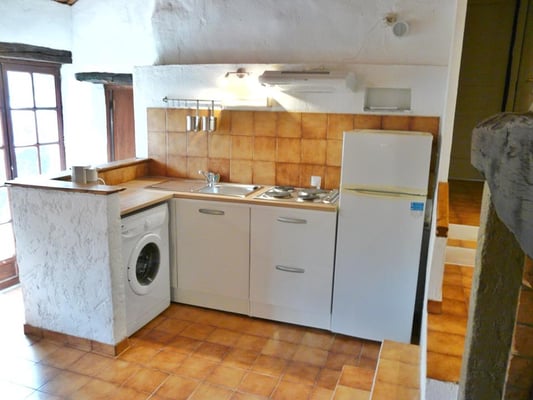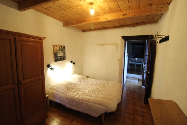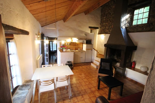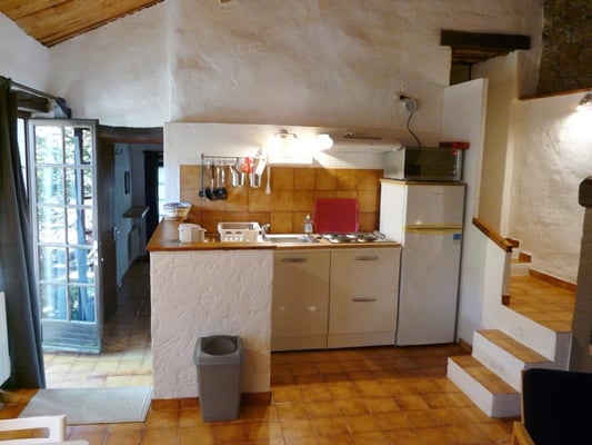De plain pied mais avec quelques marches, avec grande pièce à vivre, cuisine à l'américaine, salle de bain avec baignoire/douche, wc séparé, 2 chambres (1 lit double, 1 lit simple et 1 lit d'appoint). Chauffage électrique.