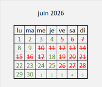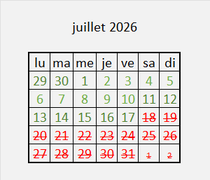| Du 1/7 au 31/8/2026 (départ le samedi à 10 h au plus tard) | |
